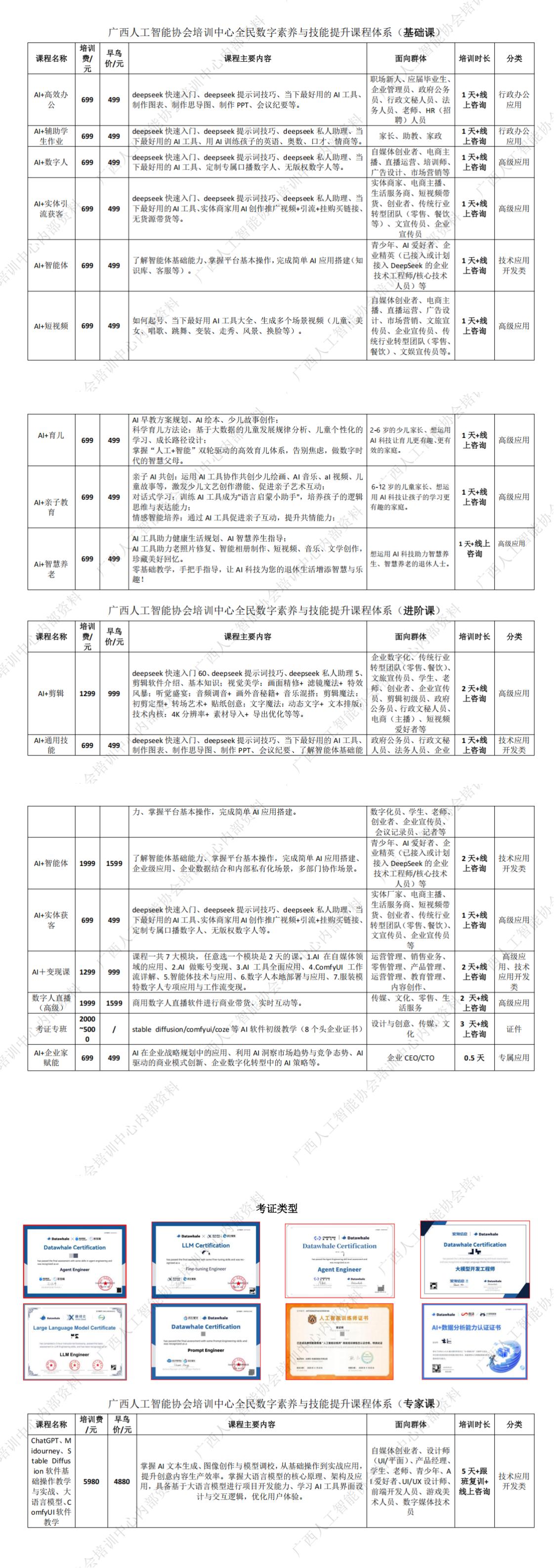 在数字化浪潮奔涌的当下,AI技术已成为驱动组织高效运作、创新发展的核心动力。广西人工智能协会培训中心深度聚焦政企实战需求,倾力打造“AI赋能职场”特训班,为社会各界人士提供从认知升级到场景落地的全栈赋能。诚邀各界人士报名参与,携手探索AI赋能组织的新路径,共同迈向数智化未来!