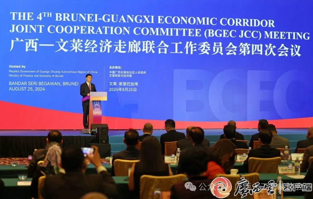 8月25日,广西—文莱经济走廊联合工作委员会第四次会议暨中国(广西)—东盟东部增长区产业对接会在文莱举行,围绕“广文走廊耀昇东盟东增区”进行深入探讨,开展合作项目签约和系列经贸交流活动。刘宁出席会议致辞时表示,习近平主席对广西—文莱经济走廊合作建设高度重视,要求将“广西—文莱经济走廊”建设成中国—东增区合作和“陆海新通道”建设的双示范项目。广西与东盟东部增长区合作密切,与文莱经贸合作潜力巨大、前景广阔,冀望在现有良好合作成果基础上,积极参与中国—东盟东部增长区合作机制,共同推进广西—文莱经济走廊建设,更好增进两国人民福祉;共同深化产业合作,打造安全稳定的产业链供应链;共同加强互联互通和人文交流,促进双方民众相知相亲相融,赓续传统友谊。第21届东博会将于今年9月在南宁举办,围绕中国—东盟自由贸易区3.0版举办系列专题活动,诚挚欢迎各界朋友共赴盛会、共襄盛举、共赢未来。刘光明表示,文莱—广西经济走廊是文莱与中国经济伙伴关系的基石,成立以来在促进文莱、中国以及其他东盟国家之间形成充满活力的供应链价值链方面发挥了关键作用。文莱正在努力实现经济多元化,期待与广西紧密合作,欢迎更多中国企业来文莱探索商机,带来更多来自中国的优质外商直接投资,在食品、下游油气、旅游、服务业和信息通信技术等领域深化合作,实现互利共赢、共同发展。