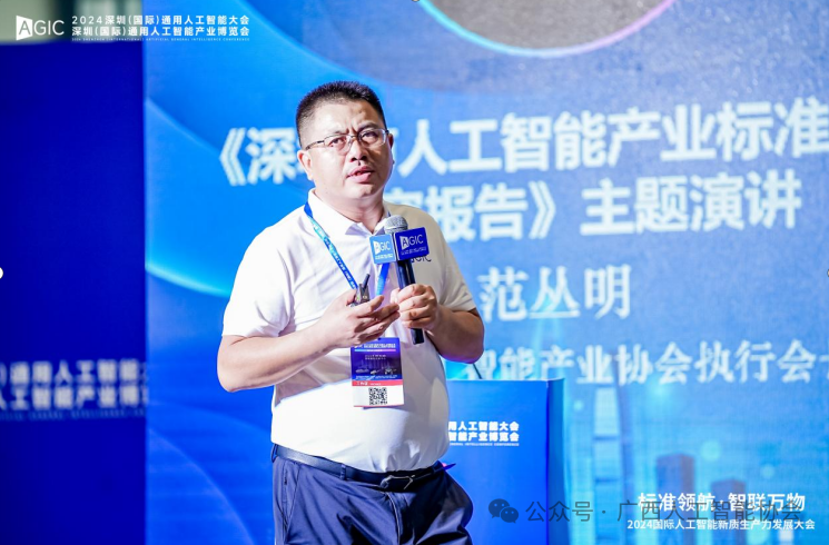 会上深圳市人工智能产业协会执行会长范丛明作《深圳市人工智能产业标准体系研究报告》主题演讲。